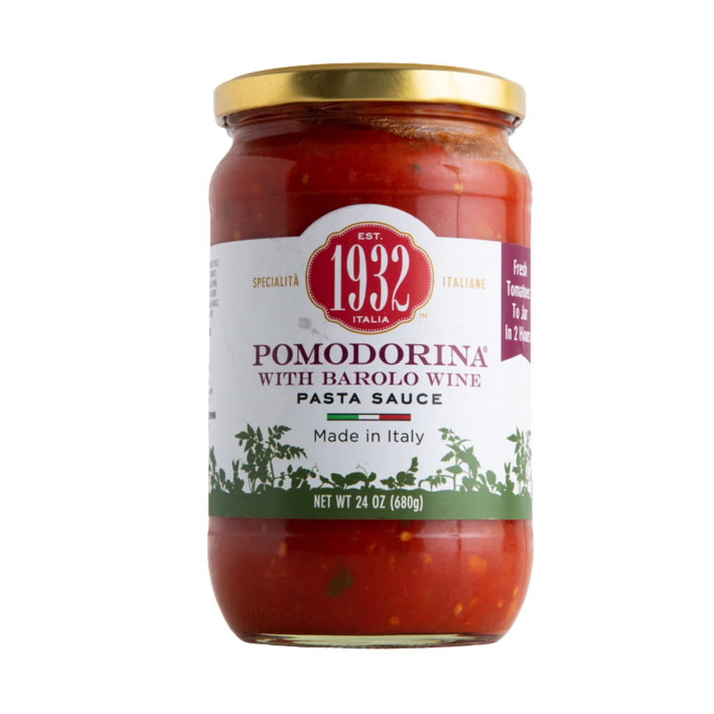 Pomodorina is 1932’s special name for our time-honored family recipe, using tomatoes picked from the sun drenched fields of the Emilia Romagna countryside. Within just two hours, the fresh picked and perfectly ripe tomato bounty is milled and kettle-cooked in small batches, with a delicious blend of Italian vegetables, herbs, extra virgin olive oil, and Italy’s greatest wine, Barolo DOCG.
