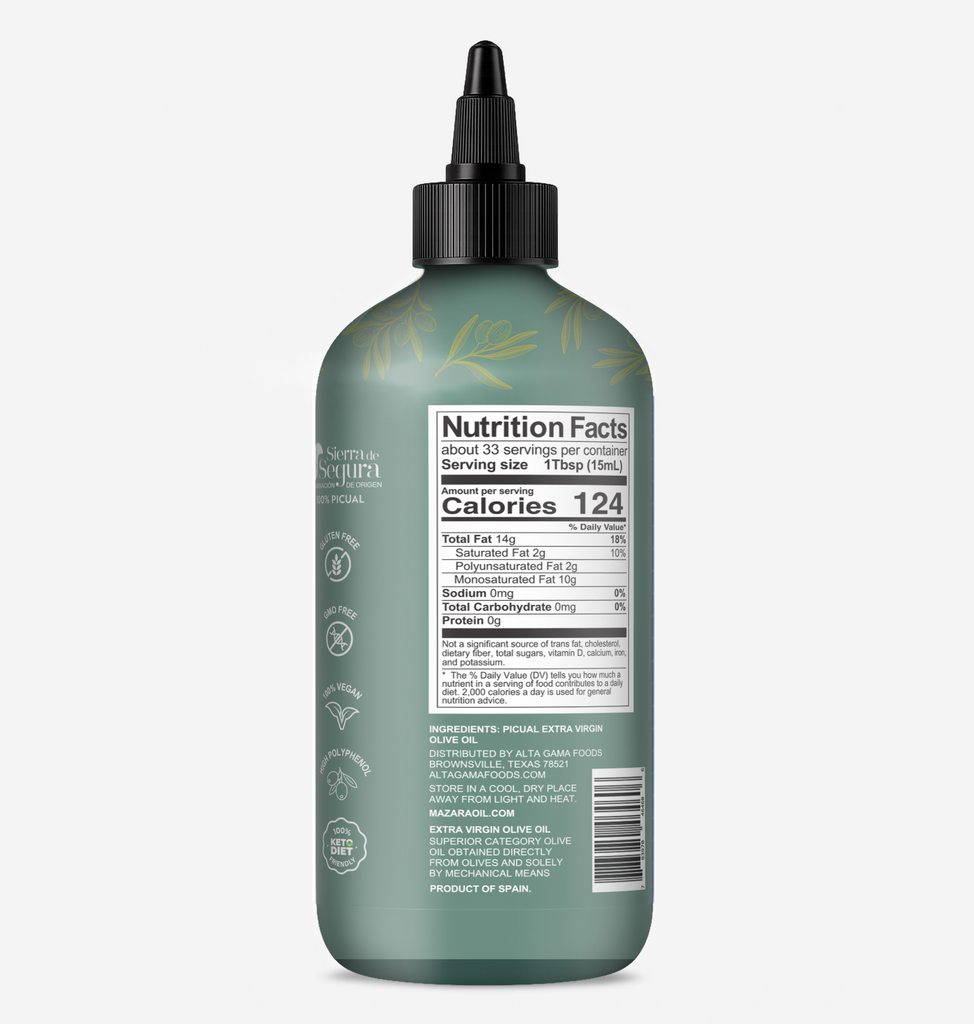 Elevate your dishes with the rich, nuanced flavors of Mazara Squeezable Spanish Drizzle and Finishing Olive Oil. Crafted from early-harvest Picual olives, this premium extra-virgin olive oil boasts a bold, peppery profile with vibrant green notes and a high concentration of antioxidants. Designed for drizzling, dipping, and finishing, it enhances every bite with a luxurious depth of flavor. Encased in a convenient squeezable bottle for effortless precision, it allows you to add the perfect finishing touch to any dish with ease and control.