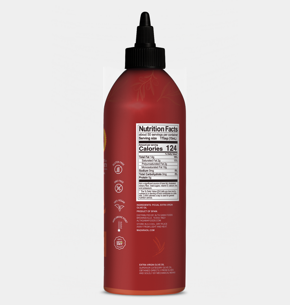 Experience the perfect balance of quality and convenience with Mazara Squeezable Spanish Cooking and Sautéing Olive Oil. Made from premium Picual olives, this extra-virgin olive oil is expertly crafted for high-heat cooking. Its stable composition and rich antioxidant profile ensure it retains its integrity even at elevated temperatures, making it an essential staple for any kitchen. The mid-harvest olives create a smooth yet flavorful oil with a well-rounded taste, ideal for everyday culinary applications. Packaged in an innovative squeezable bottle, it offers effortless precision, keeping your cooking mess-free and efficient.