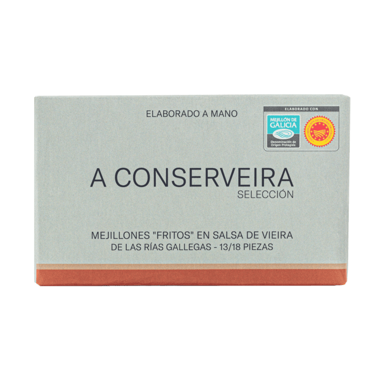 Discover refined Spanish seafood tradition with A Conserveira SELECCIÓN Fried Mussels in Scallop Sauce (Salsa de Vieira) — a premium pantry staple for seafood lovers.